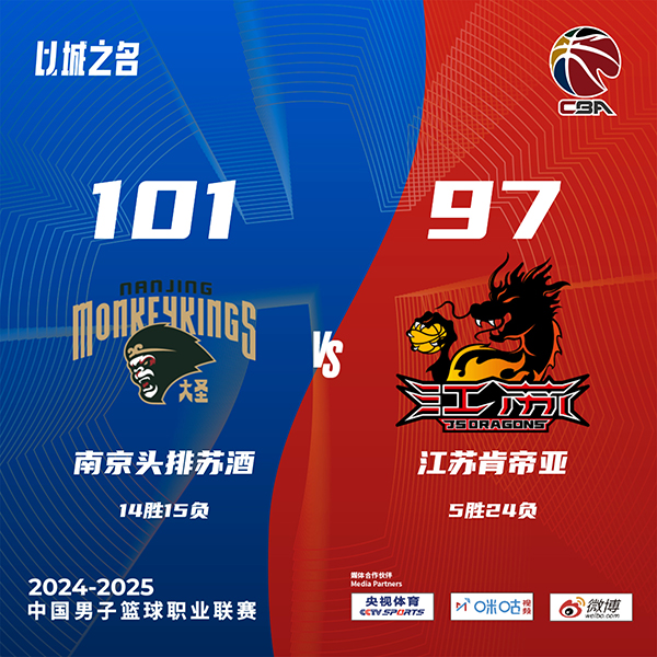 JRS低调看直播讯北京时间1月10日讯 CBA常规赛继续进行,同曦主场迎来与江苏的同省德比,林葳因流感休战两场后复出,同曦近期遭遇连败,13胜15负暂列联赛第11位,江苏上场不敌广州,5胜23负继续排在联赛倒数第二。首节开打后双方便陷入缠斗,同曦双外援利夫和哈里斯杀伤内线,江苏三外援古德温、汤普森和杰克逊轮番回应,两队比分始终紧咬,首节结束时江苏领先1分,次节回来,双方依然杀得难分难解,哈里斯延续手感予取予求,江苏火力不减强势回应,末段林葳联手哈里斯突然发力,半场战罢,同曦反超5分。易边再战后双方火力放缓,古德温单节11分率队追分,但同曦多点开花牢牢占优,三节结束后同曦依然领先5分,末节决战,江苏难以打出追分高潮,同曦始终保持两位数左右的领先,末段杰克逊飚中三分仍难救主,最终同曦101-97力克对手终结连败。