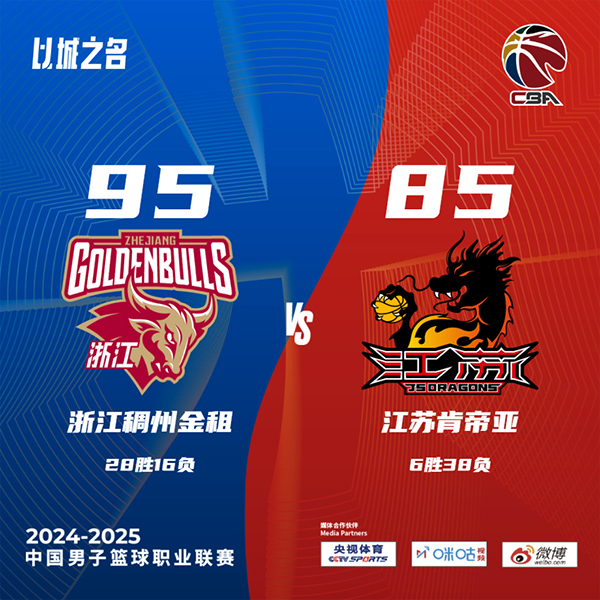 JRS低调看直播讯 北京时间3月24日讯 CBA常规赛继续开打,浙江和江苏迎来一场交手。江苏目前遭遇9连败且排在联盟倒数第一早早无缘季后赛,浙江目前取得2连胜还有机会冲一下更高的排名。首节之争浙江虽然一直占据上风但优势很小,最后3分钟里哑火仅得2分更是直接让出主动权,江苏在双外援古德温和汤普森的连续拿分中打出跨节16-5的攻势反超比分;不过江苏的进攻端没有其他人站出来,浙江则在熄火的被动中找回状态,后半段他们用一波19-6的攻势夺回5分优势。第三节开局浙江慢热再度丢了主动权,不过江苏刚刚取得领先就又一次哑火,浙江没有再浪费机会,他们随后轰出28-10的攻势直接拉开比分彻底接管比赛,末节浙江虽然哑火8分钟仅得8分,但江苏也完全无法起势导致分差一直再两位数。最终,浙江轻取江苏,并送江苏10连败。