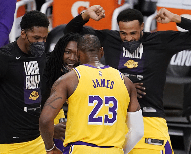湖人是一支以詹眉为基石,建立起来的夺冠球队。由于詹眉突出的个人能力,他俩落阵地战时会受到严重包夹。这时湖人的外线就会有更多的投篮机会。如果外线投得进,詹眉在内线将会有更好的得分机会。如果投不进,那么只能依靠詹眉个人能力为球队得分了。但细细回顾湖人这两年外围的射手,好像并没有表现太稳定的球员。