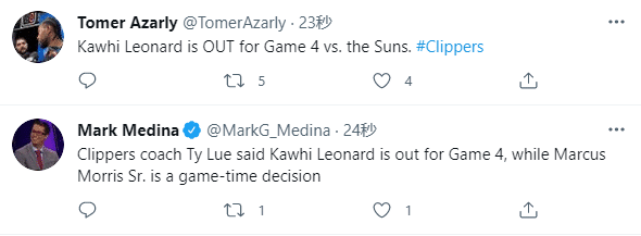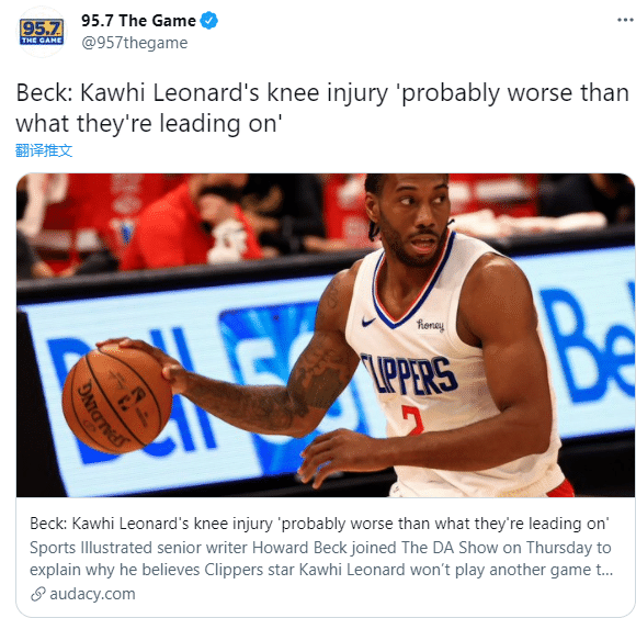 等到机会喘气,伦纳德的复出无疑是快船队球迷最为期待的,可是正所谓期望越大,失望越大,6月26日,快船队这边宣布伦纳德不会出战系列赛G4,随后名记WOJ爆料伦纳德不会在西决复出,因为伦纳德目前没有任何康复的迹象,从现状来看,伦纳德的十字韧带受伤情况要比预期的严重,他大概率将缺席季后赛。