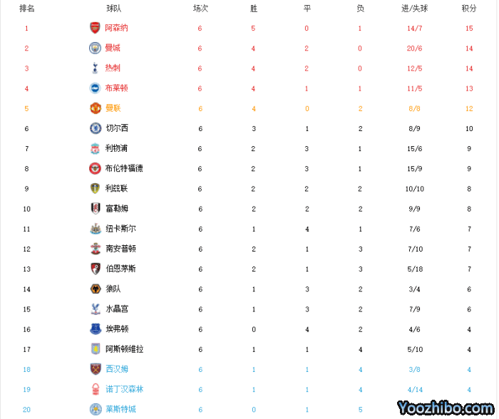 JRS低调看直播09月05日讯 ,英超第6轮的比赛已经全部结束争夺,本轮曼联主场3-1送阿森纳首败,红魔豪取4连胜。曼城和利物浦都战平没有拿到3分,切尔西绝杀西汉姆联,布莱顿6轮斩获13分成为最大黑马。本赛季的英超可以说大乱斗,阿森纳、热刺、曼城、利物浦、曼联和切尔西,群雄并起,冲击冠军。