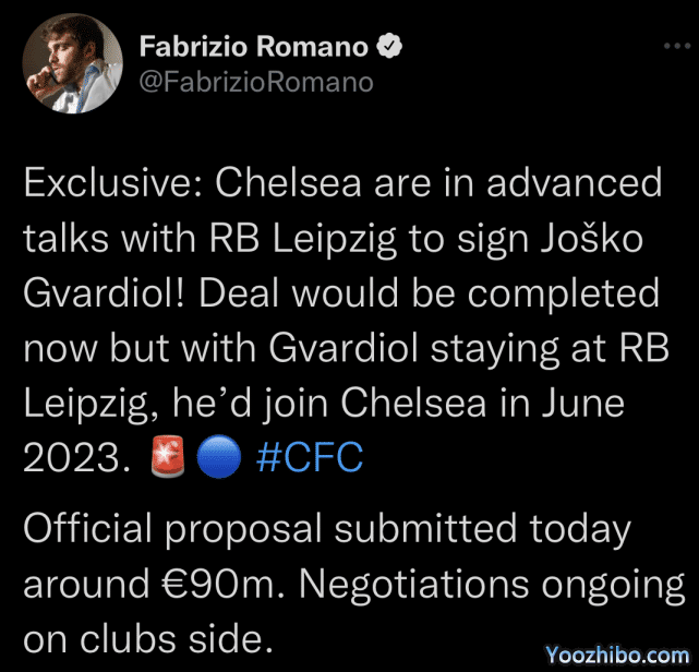 JRS低调看直播08月31日讯 凌晨,来自意大利天空体育著名记者Fabrizio Romano的独家报道,切尔西正在就克罗地亚国脚中卫格瓦迪奥尔的交易,和莱比锡红牛队进行深入谈判。